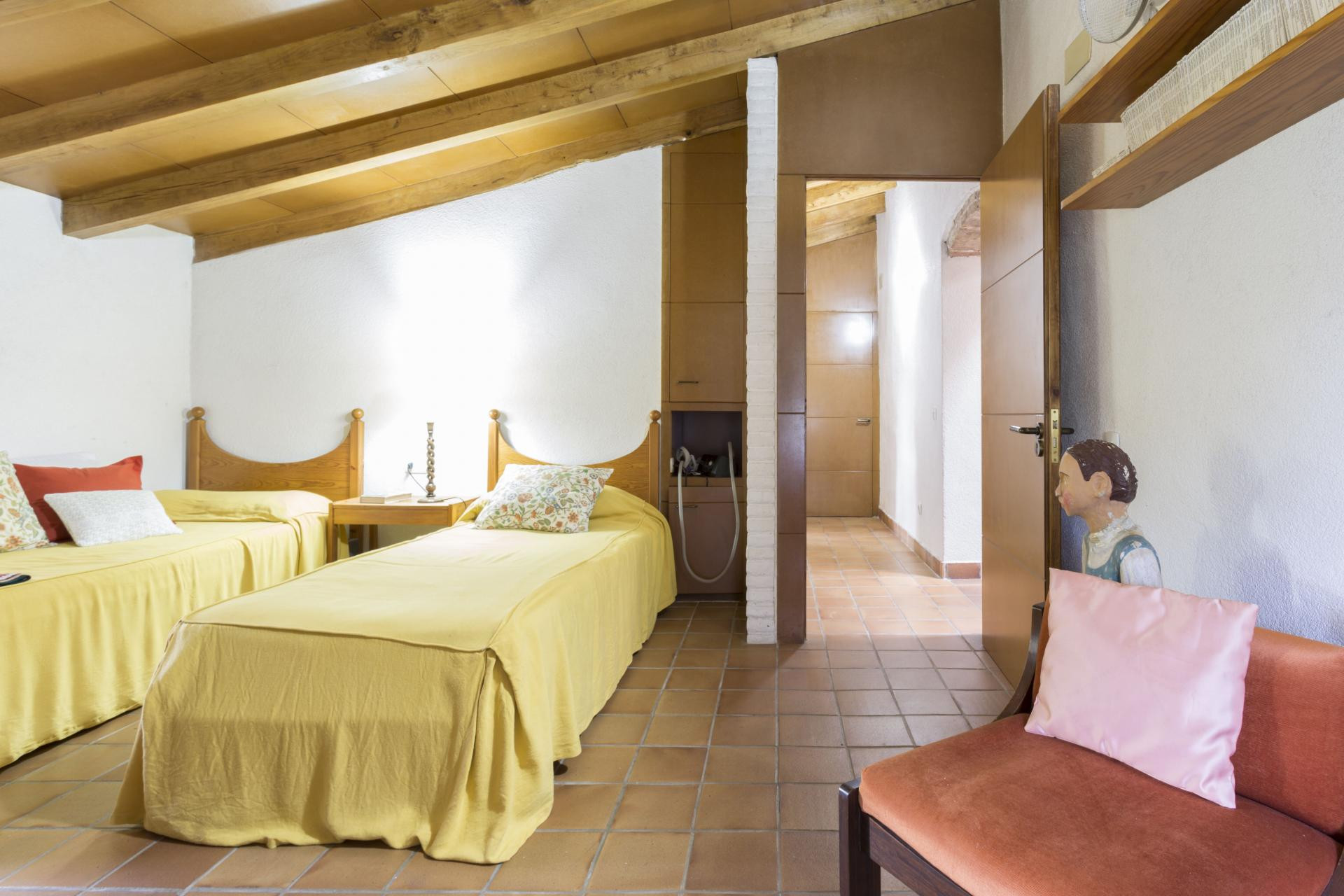Catalan farmhouse of the XVII century, totally reformed, ideal to disconnect in the middle of the nature enjoying spectacular views, swimming pool of 12 X 6m with its zone of dressing room and extensive gardens. It has 10 bedrooms, 8 complete bathrooms, very spacious living rooms, kitchen/dining room, spacious hallways on all floors. It is the perfect place for mountain excursions near the city of Girona and the beaches of the Costa Brava. The house has been completely renovated, has heating and air conditioning, and is decorated with rustic charm but with modern features. All the suites are on the first floor of the house, the shared areas include extensive lounges and large dining room, games or reading room, porch, terraces and a large swimming pool with changing rooms. There is an annex house which used to be an old hayloft, converted into a charming little house with an open plan kitchen-dining room, 3 bedrooms and two bathrooms, balcony with views, heating and air conditioning. The farmhouse is located in the middle of natural landscapes with spectacular views. An ideal environment to disconnect with hectares of garden and private forest.